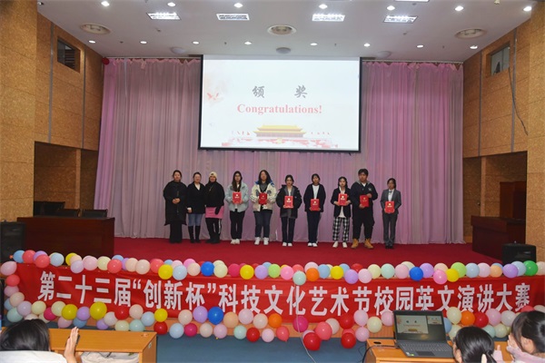 12月8日下午,由校团委、国际合作与交流处主办,外国语学院承办的第23届“创新杯”科技文化艺术节校园英语演讲大赛决赛在通榆校区国际会议中心举行。学院党委副书记张宾州、副院长周海明、副院长于胜博出席活动。翻译专业带头人陈胜利、英语系主任苏军锋、商务英语系主任樊林等7位老师担任此次比赛评委。