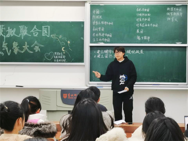 为了开阔我院学生视野,锻炼同学们的语言组织力和表达力,督促同学们更多的关注和了解国际事务,推动素质教育以培养精英学生。12月18日,我院学生会素质拓展部联合生涯规划部及城市学院辩论队于笃行楼A306面向我院大一大二学生举办了“秋叶物语—模拟联合国气象大会”。