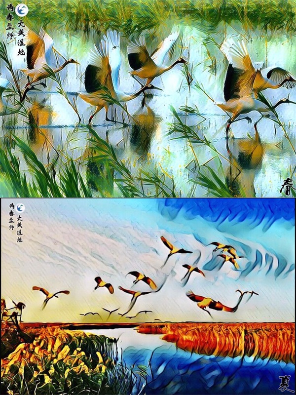 本次活动引起广大同学积极参加,并通过邮件的方式投稿。同学们的作品汇聚青春力量,彰显湿地魅力,通过广大青年学生的独特视角、动人笔触,得以发现、记录和传播盐城黄海湿地世界自然遗产之美,从而敦促更多青年学生自觉保护好传承好盐城宝贵的生态家底,积极投身于家乡生态文明建设和湿地环境保护。通过层层筛选,我院在本次大赛中获得总积分一等奖,人文194班付心瑞团队以及地科211班唐欣茹同学得到评委老师的一致认可,均荣获个人二等奖。获奖作品或以偏中国风的工笔手法,淡墨微醺,勾勒白鹤纤细又极具美感的姿态,或以厚重极富生命张力的颜色一展大美湿地滩涂,配以壮观群鹤,给人视觉冲击和心灵震撼。