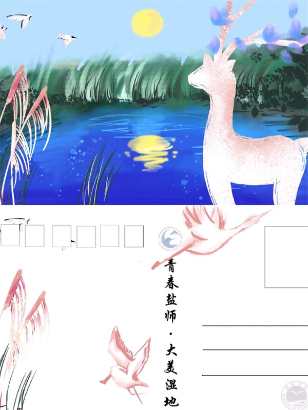 为进一步深入学习、贯彻、落实党的十九大精神,传承“两山”理念,厚植绿色底色,特别是大力宣传盐城“后申遗”时代生态文明建设的喜人成果,在校第23届科技文化艺术节期间,我院积极组织参与由湿地学院、校团委联合江苏黄海湿地文化发展有限公司共同举办的“大美湿地”明信片设计大赛。