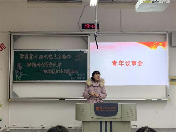 为贯彻落实省第十四次党代会精神,引导学生发扬红色传统,坚定理想信念,肩负时代重任,12月18日至19日,我院各团支部于笃行楼开展“学省第十四次党代会精神,担新时代青春使命”——联青服务站专题活动。其中,我院团委书记杨珊珊在地科191、192团支部进行领学。