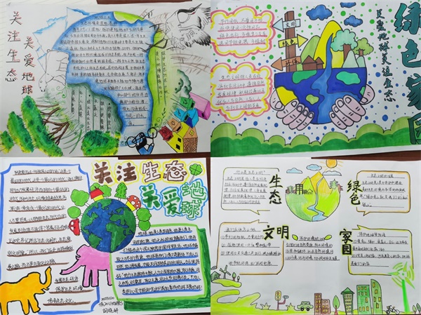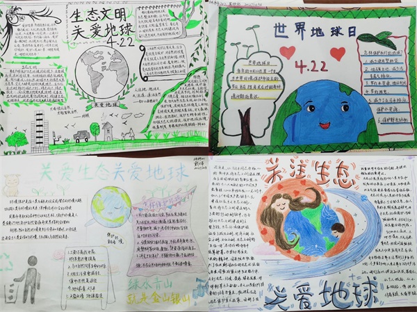 本次活动吸引了大批同学积极参与,每张手抄报在呈现出同一个主题:保护生态,刻不容缓的主题的同时都字迹工整、制作精美。其中,地科201班胡晓妍同学的作品令人印象深刻。她绘制了种满了绿树的蓝色地球,通过引用名言“这是一个最好的时代,这是一个最坏的时代”指出经济与环境间的关系,告诫我们要走可持续发展道路。地科202班吴欣怡同学的作品以介绍世界地球日为主,介绍了世界地球日的来源,在湛蓝的地球旁为我们介绍了保护地球的方法,她希望我们都能将关爱地球落实到日常生活中,将保护环境铭记于心。