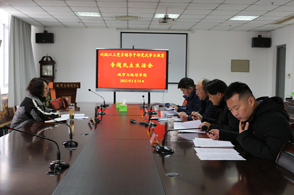 1月14日下午,我院召开处级以上领导干部党史学习教育专题民主生活会。校党委常委、纪委书记、省监委派驻监察专员韩雅丽到会指导,学院党委书记郝保成,党委副书记、院长李传武,副院长张华兵、朱天明参加会议。