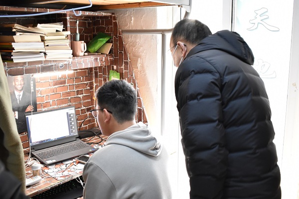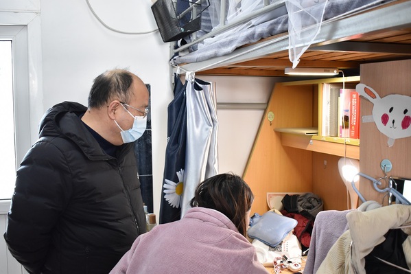 开学伊始,因疫情形势严峻,按照防控管理要求,自2月21日起,我院全面开启线上教学模式。为加强了解同学们线上学习情况,提高同学们线上学习热情,2月24日,院党委书记郝保成带领辅导员深入学生宿舍对学生线上上课情况进行检查。