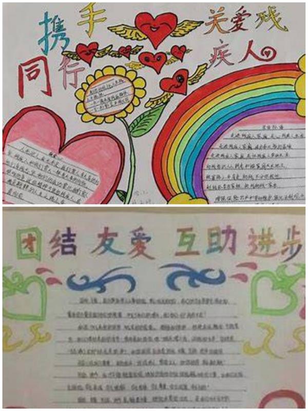 本次活动中,同学们了解了我国当前残疾人的现状,纷纷投入海报设计,在深表同情的同时,也希望让更多的人可以了解到残疾人的困难,并伸与援助之手。这一幅幅海报作品流露出同学们对残疾人深深的关爱。其中有一位同学表示:若每一个人都可以给予残疾人多一点关爱,那一份份的温暖将如冬日里的一束阳光,照亮他们的世界。