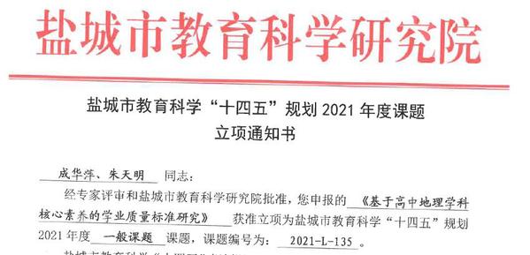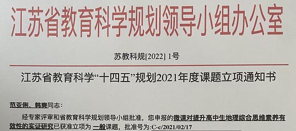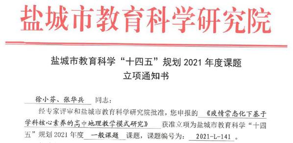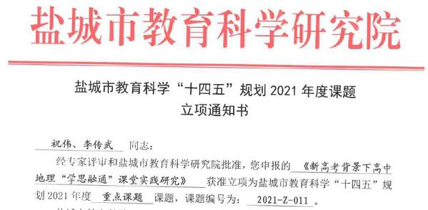 为深入推进地理科学(师范)、人文地理与城乡规划一流本科专业建设,补齐教育教学研究短板,城市与规划学院积极对接盐城市优质中学,建立了互利共赢的教师教育联盟关系,在教研课题共同申报与研究方面取得了丰硕成果。在近期公布的各类教研课题立项名单中,我院韩爽老师与亭湖高级中学教师共同申报的“微课对提升高中生地理综合思维素养有效性的实证研究”获批江苏省“十四五”规划课题,李传武、张华兵、朱天明分别与盐城市教育科学研究院、盐城市第一中学、盐城市文峰高级中学等单位的老师合作,共同申报并获批盐城市教育科学“十四五”规划课题3项,此外,我院教师以课题组的形式共同申报并获批必发集团welcome欢迎光临校级教育教学研究课题3项。