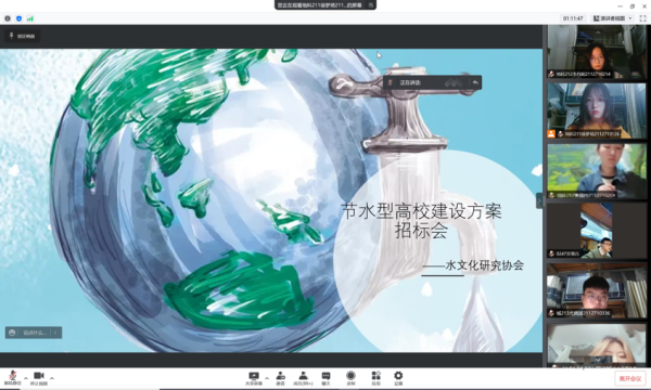 为纪念第三十届世界水日与第三十五个“中国水周”,加强同学们的节水意识,传播节约用水的文明理念,倡导节约用水的高校生活方式。2022年3月23日19点,由我院水文化研究协会举办的“节水型高校建设方案招标会”线上活动成功举行。
