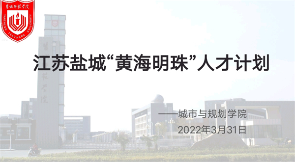 人才是第一资源,创新是第一动力。为了推进《关于实施黄海明珠人才计划的若干政策》等相关政策的落实,帮助我院学生更详细地了解此人才计划,3月31日,城市与规划学院举办了江苏盐城“黄海明珠”人才计划的宣讲活动。