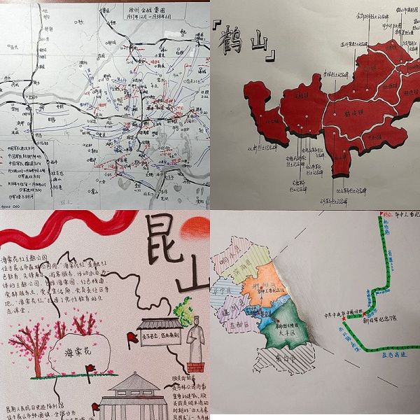 绘制红色历史路线。参与本活动的学生通过查阅资料、了解相关史实,结合专业特色,用纸笔绘制出红色历史事件的路线图。其中,地科203班张芯源同学创作的1937年12月至次年6月间的徐州会战要图,详细记录了那一段烽火岁月里中国军民抗击侵略者的过程。地科212班贾彦冰同学用画笔画下了1934至1936年的长征路线图,生动展示了可歌可泣的长征史诗和伟大的长征精神。