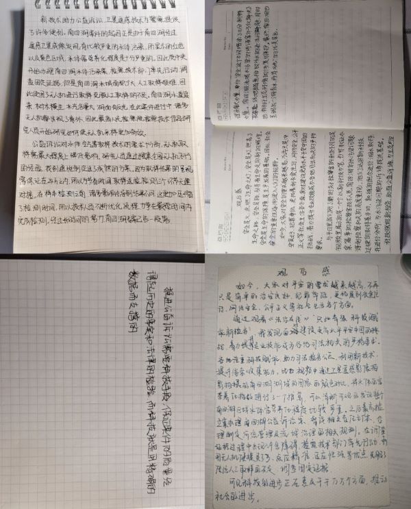 活动开始,同学们观看了一段法治视频。视频中,一群检察官凭借着自身过硬的技巧和先进的科技辅助处理了数起棘手的案件,有效地保障了人民的生命财产安全。活动结束后,同学们深有感触,纷纷手写感悟并积极分享,有同学认为,检察官不仅仅是一个职位,更是对人民负责的一个途径,也有同学觉得我们要为那些着眼“国之大者”、服务中心大局的检察机关点赞,更有同学表示要以他们为目标,在将来也为国民生命安全财产的保障贡献出一份力量。