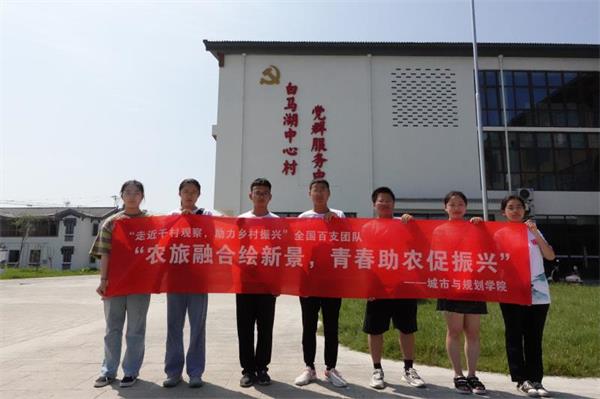 为助力实现农村一、二、三产业融合发展、推动农业与旅游深度融合的目标,我院“农旅融合绘新景,青春助农促振兴”社会实践团于7月22日前往淮安市金湖县前锋镇白马湖村开展实践调研活动。
