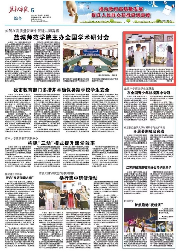 8月18日,盐阜大众报报道了城市与规划学院“农旅融合发展绘新景,青春助农促振兴”实践团的暑期社会实践活动。
