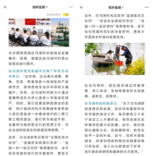 在调研中,团队成员了解到,白马湖村正不断补齐农村人居环境和公共服务短板,加快进行对外宣传工作并鼓励年轻人回家乡创业,描绘出一幅生态宜居、人文浓厚、旅游兴盛的美丽乡村新画卷,也为其他乡村在探究农旅融合发展提供了一个新的转型方向。