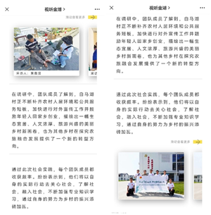 8月1日,视听金湖报道了城市与规划学院“农旅融合绘新景,青春助农促振兴”实践团的暑期社会实践活动。