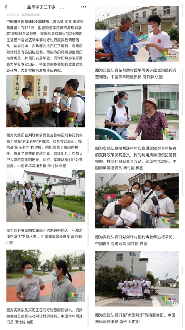 8月22日,《中国青年网》报道了城市与规划学院“农旅融合绘新景,青春助农促振兴”实践团的暑期社会实践活动。
