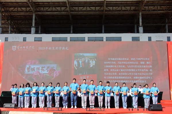 开学典礼前现场播放了《面向大海》校园风光片、《初心·芳华》9.19校庆日宣传片、《言实·有为》新生入学教育专题片。典礼在庄严的国歌声中拉开序幕。学校党委副书记、校长张宏如对新同学的到来表示最热烈的欢迎,他在致辞中对新生提出了三点希望:胸怀理想、矢志报国,在铸梦复兴中升华“大我”;踔厉笃行、勇担使命,在追梦奋斗中超越“自我”;深耕求索、臻于至善,在圆梦致远中塑造“新我”。教师代表、校友代表、新生代表的精彩发言赢得阵阵掌声。在典礼中,校领导向2022年退役返校大学生士兵代表颁发荣誉证书,同时,向2022级新生代表赠送书籍《习近平与大学生朋友们》,并为他们佩戴必发集团welcome欢迎光临校徽。