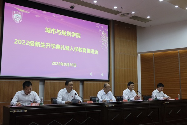 9月30日上午,城市与规划学院隆重举行2022级新生开学典礼暨入学教育推进会。学院领导郝保成、李传武、张华兵、朱天明出席典礼,学院各系主任、党政办、教研办、教师代表、全体辅导员参加典礼。开学典礼由学院党委副书记吴恒仲主持。