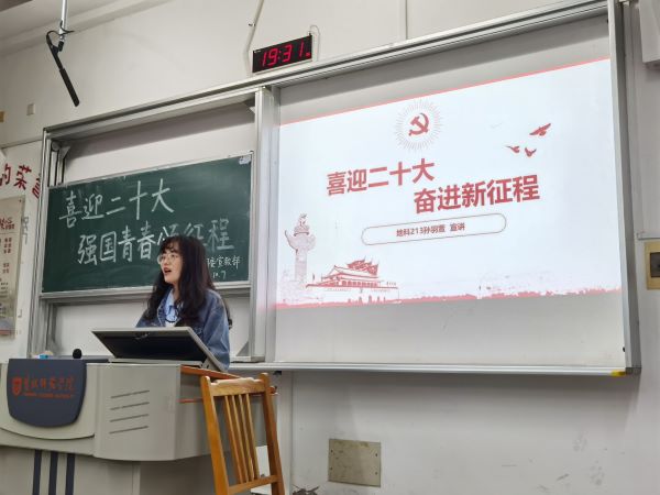 “强国青音颂征程”主题宣讲。10月7日晚,我院分团委举办了线下宣讲竞赛活动,七位宣讲者讲述了党的十九大以来我们身边的家乡、人和事发生的变化。地科213班孙雨萱同学从“衣”“食”、“住”“行”四个方面讲述了党的十九大以来乡镇地区的变化,以自己的亲身经历赞颂党的伟大领导;地科222班卢汕骏同学则以长江及其沿岸环境为线索讲述了自十九大以来党通过一系列的正确决策让长江及其沿岸的生态环境重新焕发生机的伟大成就。