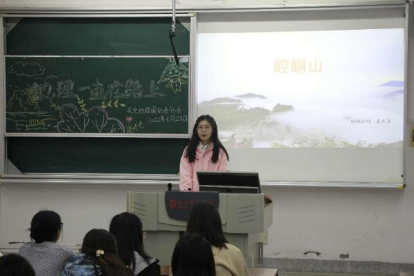 俗话说:“读万卷书不如行万里路。”活动过程中,九名分享者利用图文结合的方式向大家分享了丰富的旅游经历。地科211班孟武存向大家介绍了甘肃省的崆峒山,又称“中华道教第一山”。地科222班任芷晴同学向大家分享了她的新疆之旅,从《西游记》切入并以专业的地理知识为同学们讲解火焰山的成因。地科222班卢汕峻同学结合所学知识,寻着古人的脚步,一路向西,用实践感受丝绸之路的魅力。其他参与者们介绍的风景也各具特色,有高山林海,有苍茫边塞,也有碧海蓝天,既突出了祖国的幅员辽阔,也赞美了祖国的大好河山。同学纷纷表示,此次的活动不仅拓宽了他们的眼界,还增强了他们对地理专业的兴趣。