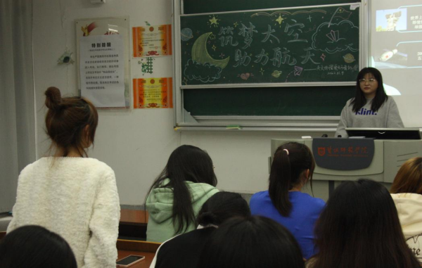党的二十大报告强调要加快建设航天强国。为了使同学们深入了解中国航天的成就,增强对太空探索的兴趣,弘扬中国航天精神,11月9日,我院天文地理爱好者协会于笃行楼A109举办“筑梦太空,助力航天”主题活动。