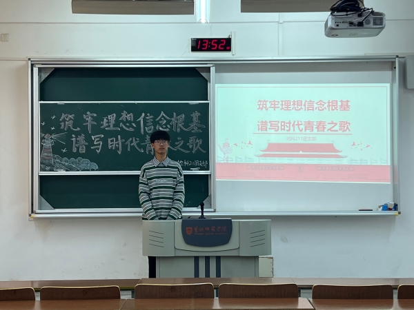 各团支部组织同学深入学习习近平总书记在中国人民大学考察调研时发表的重要讲话精神,深入理解“国际大学生节”。课上,各位团支书引导同学思考:作为新时代青年,应该如何与时代同向同行。地科223班团支书于点同学表示:“我们要用最新的理论知识武装头脑,用最坚定的理想信仰鼓舞精神,肯担当,敢作为,为全面建成社会主义现代化强国、实现第二个百年奋斗目标,以中国式现代化全面推进中华民族伟大复兴而奋斗!”