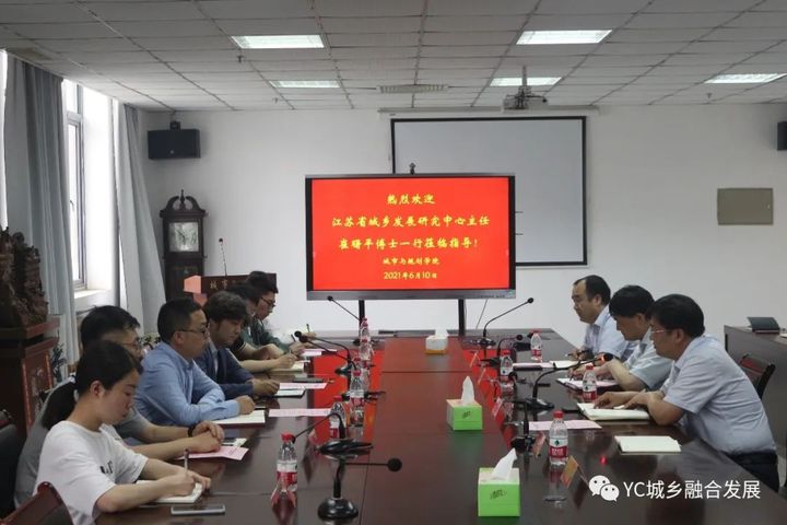 6月10日下午,江苏省城乡发展研究中心主任崔曙平博士、副主任李红波博士、王立韬助理工程师等一行莅临盐城市重点智库盐城城乡融合发展研究院考察交流。交流会由城市与规划学院院长、盐城城乡融合发展研究院负责人李传武教授主持,城市与规划学院党委书记王广飞教授、科技与产业处副处长卢东祥教授出席会议,盐城城乡融合发展研究院部分研究人员参加会议。