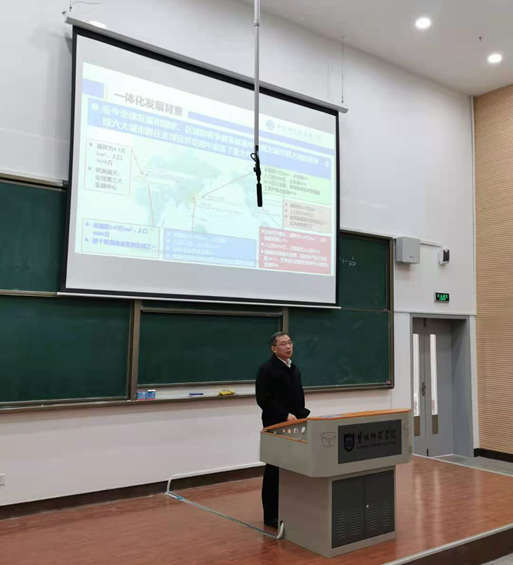 2020年11月27日,盐城城乡融合发展研究院邀请中科院南京分院院长杨桂山研究员,在必发集团welcome欢迎光临地理信息楼A200学术报告厅举行了一场题为“长三角一体化与江苏融合发展”的专题学术报告会。本次报告会由盐城城乡融合发展研究院院长李传武教授主持,陈洪全教授、盐城城乡融合发展研究院骨干教师共同学习了报告。