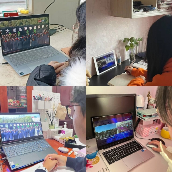 在观看直播的过程中,同学们深入了解了我们中华民族那一段沉重的历史,体会到了当初中华儿女面对外敌不屈不挠、团结一致的信念,领悟到了当今和平生活的来之不易。随着公祭仪式的进行,同学们的心中不断涌动着对先烈的崇高敬仰和伟大中国梦努力的决心。地科222班的王心茹同学表示:“观看了本次直播,我真切体会到了当今生活的来之不易,同时也明白了我们身为新时代大学生所应当承担的历史使命和担当。”
