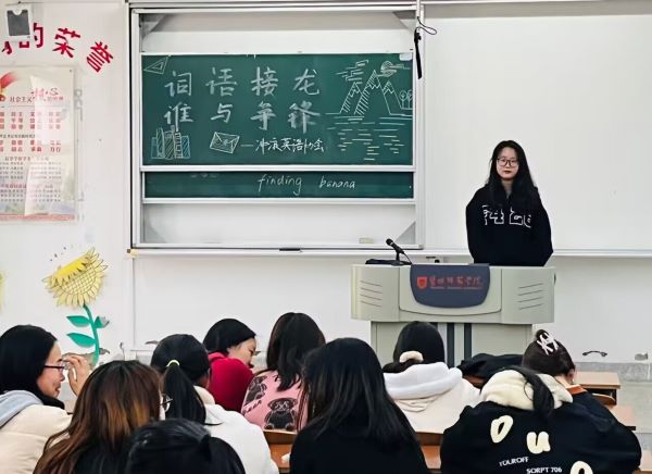本次英语单词接龙活动提供了一个展示自我、提升自我的机会,提高了大学生语言素质和英语学习效率,锻炼了同学们敏税的思维和快速的反应能力,让同学们从益智游戏中体会到学习英语的乐趣。(文:周诗甜 图:周诗甜 审核:王瓅)