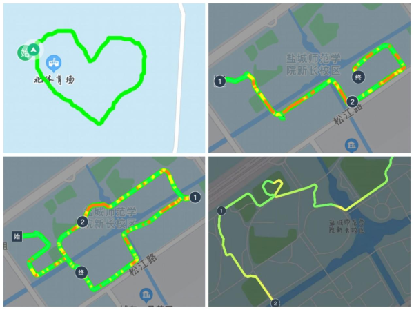 本次乐跑活动分为线下集合统一打卡和自行乐跑打卡两个部分。同学们踊跃报名、积极参与,准时到新长校区西操场集合,在负责人带领下开始乐跑。同学们迎着阳光奔跑,尽情地挥洒汗水,在自由奔跑中释放了压力,拥有了更加积极的心态。参加活动的贾骏楠同学以爱心为路线,他这样解释道:我希望将爱充满校园,人人有爱,人人大爱,健康积极,以爱待人。
