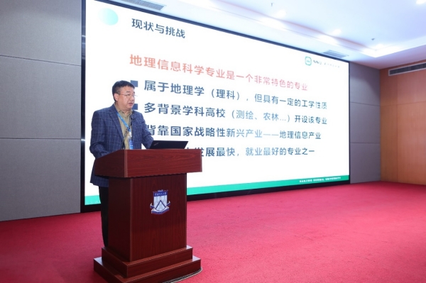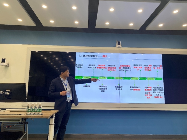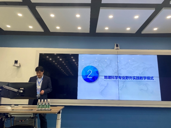 本次会议设地理学专业建设、教材与课程建设、人才培养体系、教学改革、野外实习和课程思政6个分论坛。李传武院长在地理学野外实习分会场作了题为“地方高校地理科学专业野外实践教学模式研究”的专题报告。报告展示了地理科学专业野外实践教学背景、我院地理科学专业野外实践教学模式和野外实践教学案例。以国家级地理科学一流本科专业建设点为契机,我院形成了野外实践教学系列课程资源、实践基地群与教学团队建设,形成了递进式多元化的实践教学体系和“1234”野外实践教学模式。以世界自然遗产、江苏农房改造、三农调研、江苏家庭农场调研等开展了野外实践教学,学生的野外实践能力得到了显著提升。