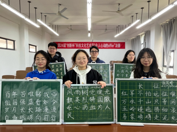 为继续推进班级学风建设,以“三字一话”技能训练为突破口,强调坚持练好基本功,进一步学习领会王强精神丰富内涵和时代意义。4月10日-21日,地科222班在笃行楼A109举办“笔墨间党史流传”主题活动。