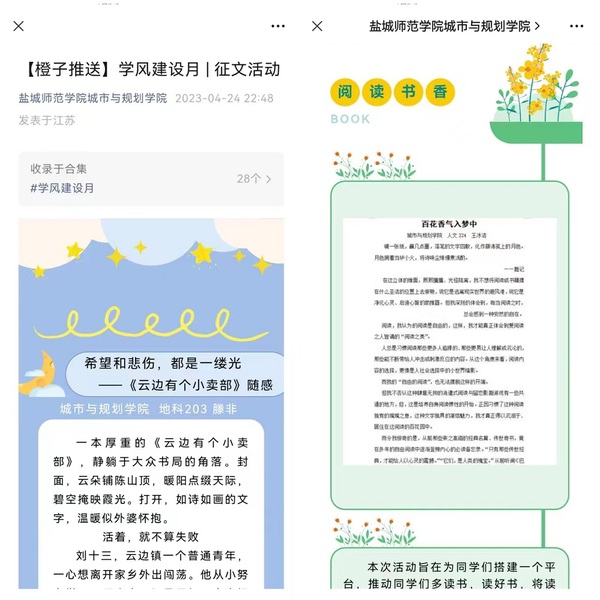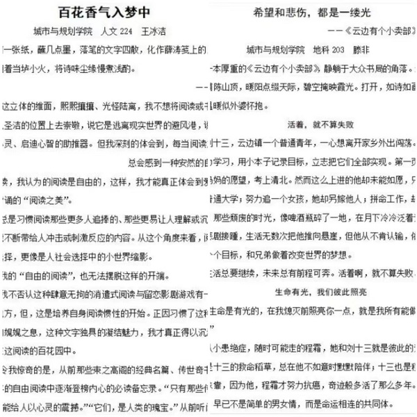 读书征文,共叙书中思想。学院组织开展读书征文活动,同学们选择书目阅读并通过写作分享自己的读书感受,地科203班的滕飞分享了《云边有个小卖部》这本书;学院将优秀征文通过微信公众号等平台发布,展现同学们对阅读的思考;在茫茫书海中,让心灵自由的沉浮,让自己的灵魂无拘无束的呐喊,经受陶冶,洞察人间,保持本心,默然前行。