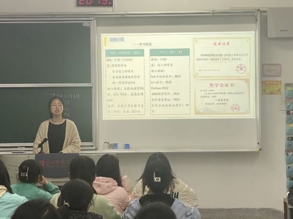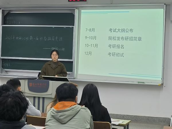 分享会中,朱翠学姐结合自身经验向大二同学表明,信息获取在考研准备中起至关重要的作用,在考研准备过程中,可以加入一些意向高校的QQ群,在群聊中请教学长学姐自身关切的问题,同时也要关注高校的公众号和官网,了解考试教材信息。现考取中国海洋大学地质勘探专业的周成龙学长为海洋班的同学指出,学习地质学最重要的是教材内容。考取河海大学环境资源专业的肖燕学姐提出,备考环境资源专业需适当延长备考时间,着重抓专业课和数学。卜书琴学姐以408分高分上岸江苏师范大学,她提醒同学们要注重英语学习,多多参加比赛,争取可以在本科期间发表论文和参加项目。考取中科学院大学的许佳怡学姐分享了成功考取中科院的学习经验,强调了考研数学要尽早开始学习,要制定好科学的学习计划,养成良好的学习习惯,提高学习效率。分享会上同学们也踊跃地提出自身关心的问题,讨论热火朝天。
