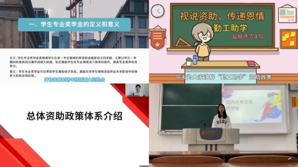 在此次参赛的宣讲视频中,宣讲者围绕资助政策的种类、申报条件、申报流程、资助金额等内容,普及国家和学校的一系列资助细则,宣传与解读我校“奖、助、补、贷、勤、减”及绿色通道的多元混合资助体系。参赛选手们的演讲形式丰富多彩,其中地科223班的仲宁同学采取了ppt与短视频相结合的方式,鼓励大家将感恩之心融于日常学习生活,积极参加志愿活动,回报学校,传递爱心;测绘226班的符玉欢同学通过vlog短视频记录我院学生受助前后的生活和心态改变,展现了国家和学校资助政策对家庭经济困难学生精准化的实际帮扶。