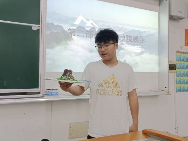 活动过程中,人文225班的张心怡同学利用图文结合的方式,用古典诗词引入话题,结合具体的典型特殊地貌景观,为同学们一一讲解了喀斯特地貌、河流、风沙地貌和海岸地貌等的成因以及形态特点,并分析特殊地貌对地球景观和人类生存的影响,进一步巩固了同学们对特殊地貌的认知。地科227班王海骏同学和祁广豪同学分别向大家展示了他们所制作的精美微型地貌模型,并向大家简单的介绍了模型所涉及的特殊地貌的形态和成因。地科222班吉新宇同学表示:“此次活动不仅帮助我们巩固了已学的知识,还为我们拓展了现有的知识层面,在平时的日常生活中,我们要学会在欣赏自然界独特的美景时调用所学知识,用更专业的眼光来解读大自然的鬼斧神工。”