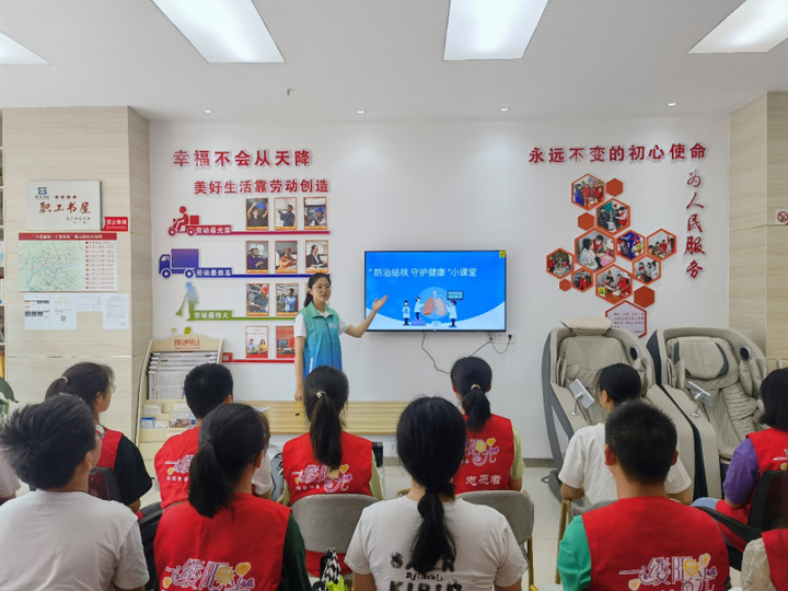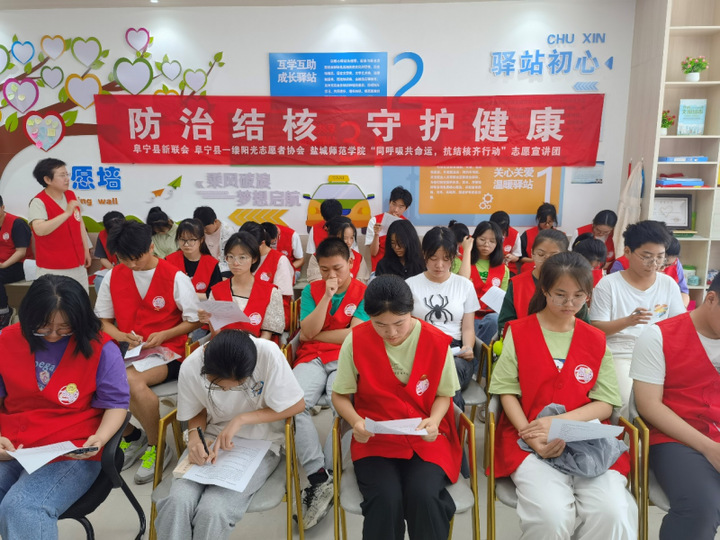 为进一步落实习近平总书记关于健康中国的重要论述和“从源头上预防和控制重大疾病,实现从以治病为中心转向以健康为中心”的重要指示,提高群众对结核病危害的认知,增强自我防护意识,7月4日,我院组建的全国大学生“防治结核 志愿有我”志愿宣讲团赴盐城市阜宁县暖心驿站开展“防治结合,守护健康”暑期社会实践活动。