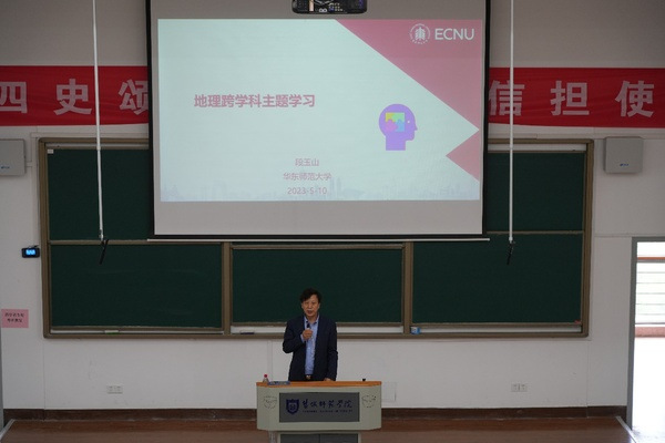 为进一步提升我院地理师范生的教学技能和综合素养,5月10日,我院邀请华东师范大学段玉山教授在地理信息楼A200做了题为《地理跨学科主题学习》的专题讲座,院长李传武、副院长张华兵、副院长朱天明、地理科学系骨干教师及2021级全体师范生参加活动。