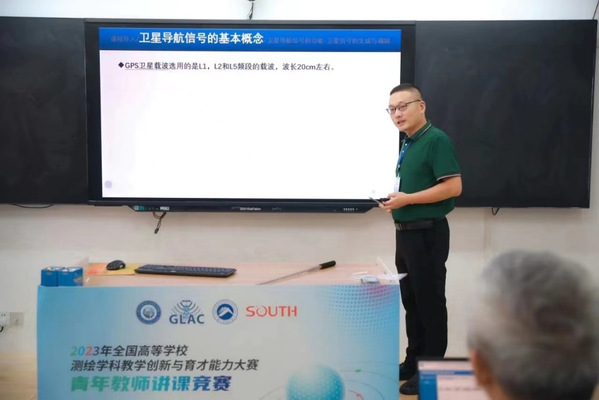 2023年7月30-31日,由中国测绘学会教育工作委员会、中国卫星导航定位协会教育与发展专业委员会主办,湖南科技大学承办,广州南方测绘科技股份有限公司协办的2023年全国高等学校测绘学科教学创新与育才能力大赛—青年教师讲课竞赛决赛在湖南科技大学举办。本届青年教师讲课竞赛共有来自全国81所高校的220名选手报名参加,竞赛共分为四门课程,包括《工程测量学》、《遥感原理与应用》、《地图学》和《GNSS原理及应用》。竞赛分线上预赛和线下决赛2个阶段进行,经过前期线上预赛,最终共有45名选手进入本次线下决赛。