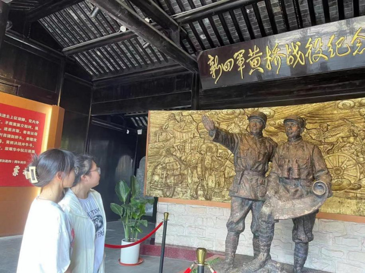 在泰州市海军诞生地纪念馆,实践团走过了50米长的模拟舰桥,从近代沧桑、白马建军威震海疆发展壮大和鱼水情深等五个部分中感受到了从建设海军编制,到培养人才,到自主研发,到航海事业冉冉上升的辛勤历程。在新四军黄桥战役纪念馆,“中央决策、发展华中”“挺进苏北、东进黄桥”“立足黄桥、团结抗日”等黄桥战役中黄桥人民奋勇直前的生动场景,从黄桥战役的历史背景至黄桥古镇的当代发展的历史画卷让实践团成员颇受震撼,一同回首那段峥嵘岁月,缅怀革命先辈的丰功伟绩。