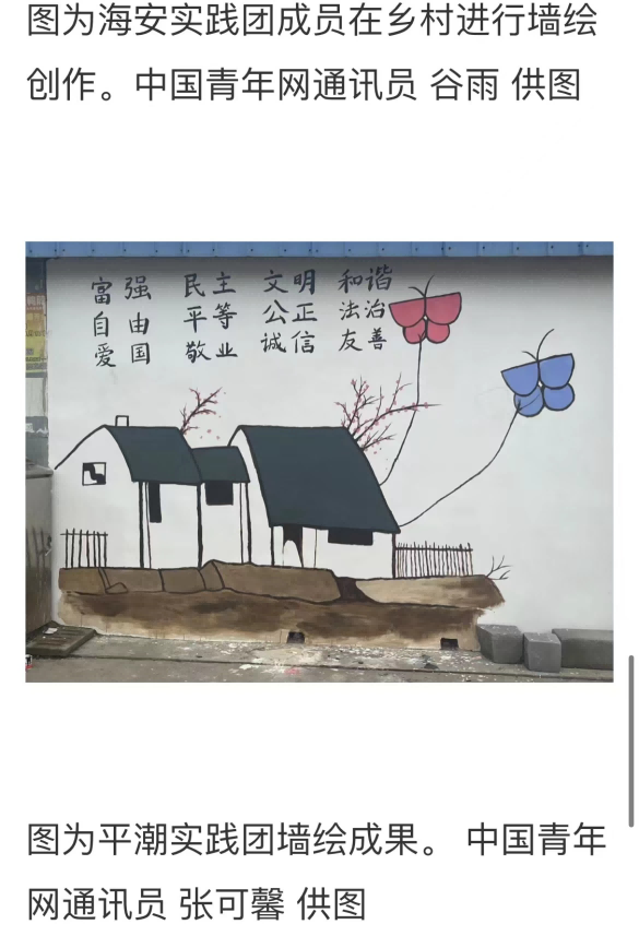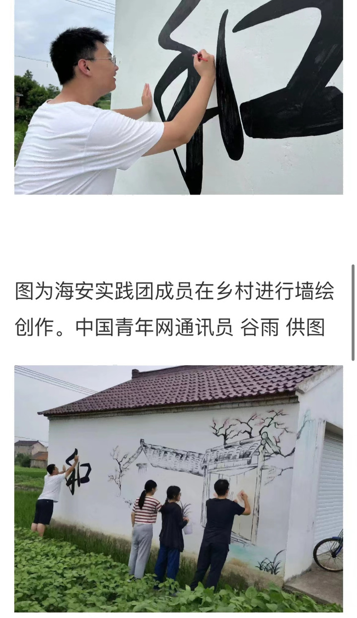 必发集团welcome欢迎光临城市与规划“乡约红色盛夏,青绘美丽江苏”社会实践团队于7月14-16日、22-23日前往盐城市尚庄镇吉爱村、南通市海安市海北村和平潮镇九圩港村进行墙绘活动。本次活动通过走近基层乡村,使同学们把课堂学习与乡村实践紧密结合起来,厚植爱农情怀,练就兴农本领,赋能乡村振兴。坚持以社会主义核心价值观为主旋律,用彩笔绘就乡村振兴梦,用浓墨展现时代强国最新颜,用真情为乡村振兴贡献青春力量,让一幅幅色彩鲜艳、主题鲜明的墙绘作品在田野乡间绽放!