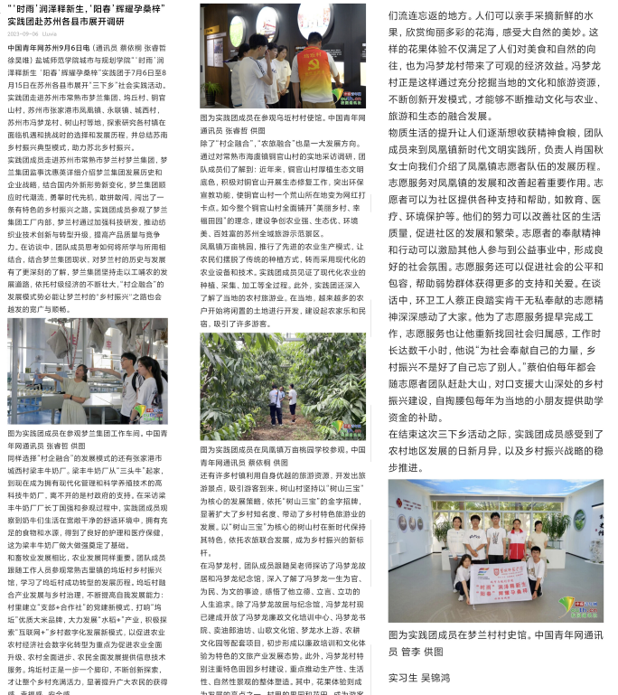 9月6日,中国青年网(中青校园)报道了城市与规划学院“‘时雨’润泽释新生 ‘阳春’辉耀孕桑梓”实践团的暑期社会实践活动。