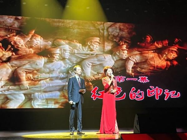 演出在欢快的开场舞《春风十万里》中拉开帷幕,“红色的印记”“我们的故事”“追梦向未来”三个篇章徐徐展开。情景演唱《南湖红船》、红歌《珊瑚颂》等节目再现了中国共产党团结带领群众从一个胜利走向另一个胜利的伟大征程,舞蹈《春天的芭蕾》赞美了伟大的祖国、伟大的党,歌颂了新时代新面貌。歌表演《撸起袖子加油干》体现了老同志红心向党的意志和情怀,不断将演出推向高潮。最后,文艺演出在《没有共产党就没有新中国》的全体大合唱中落下帷幕。