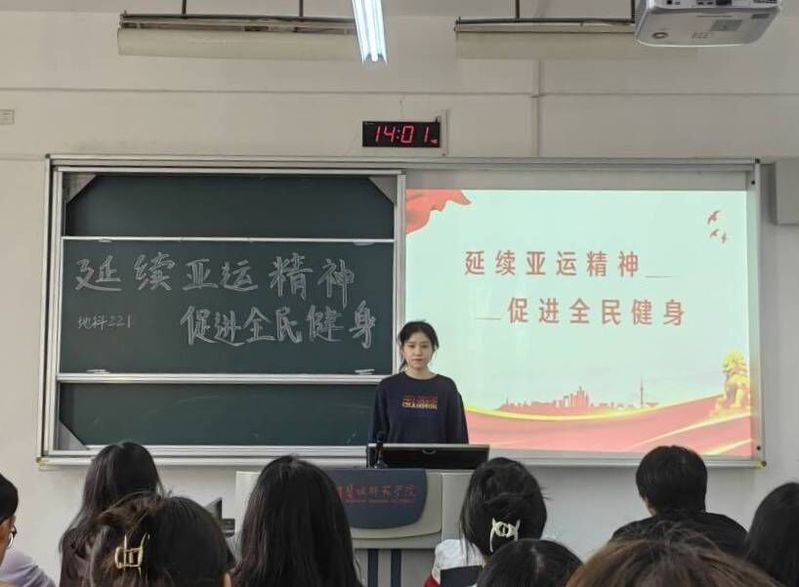 活动中,各班团支部从历史发展、项目内容和亚运精神三个方面学习了解亚运的意义,组织同学们观看亚运会相关视频片段,帮助同学们进一步深化中华体育精神,推进体育强国建设。活动期间,各班团支部组织领读习近平总书记在亚运会开幕式欢迎宴会上的致辞,深刻把握习近平新时代中国特色社会主义思想,促进全民健身。同学们结合自身情况,针对青年学生如何开展健康运动进行交流,其中人文225班张心怡表示:“全民健身已经成为社会共识。作为青年学生,我们可以利用课余时间,开展一些简单的体育运动,保持身心健康。”
