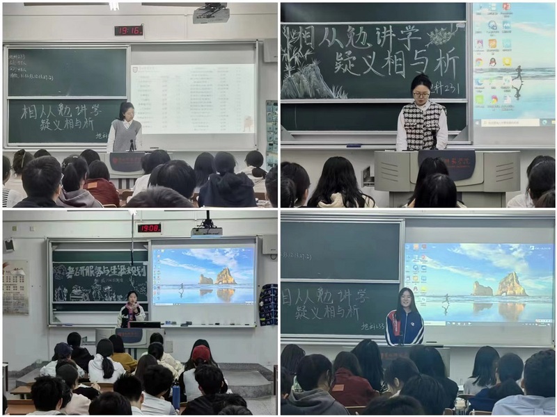 地科211班邵娜介绍了大一至大三的专业课程,她建议大家也要勇敢提问回答。最后,她强调不要站在原地想象困难,打败焦虑的最好办法就是行动起来。