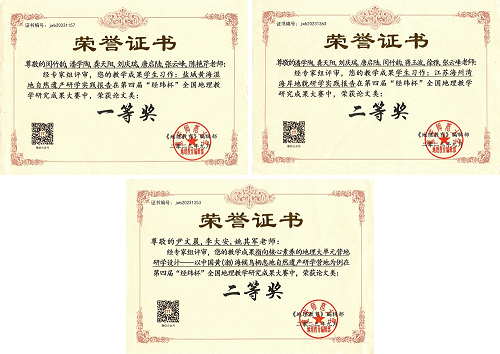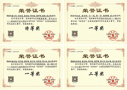 9月6日,中国地理学会主办,地理教育三刊《地理教育》、《地理教学》、《中学地理教学参考》组织承办的2023年第四届“经纬杯”全国地理教学研究成果大赛落下帷幕。我院参赛队伍在指导老师的指导下,团结协作、奋力拼搏,高质量完成作品创作,喜获佳绩。报送的7件作品全部获奖,获奖率100%,其中特等奖1项,一等奖3项,二等奖3项。
