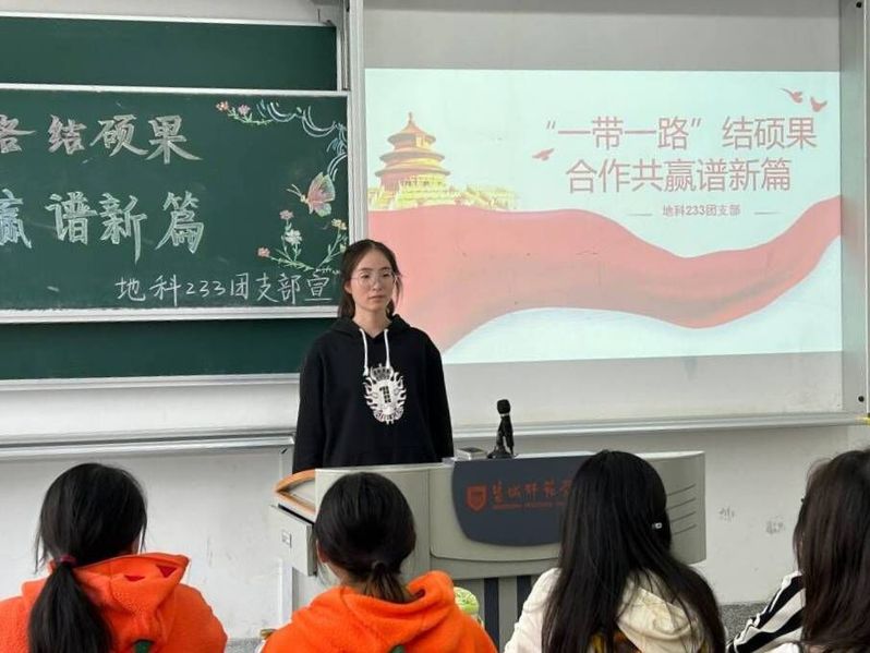 活动中,各班团支部组织同学们观看习近平总书记在第三届“一带一路”国际合作高峰论坛开幕式上的主旨演讲视频,帮助大家更好地了解到只有合作共赢才能办成事,办好事,办大事,进一步增强互学互赢,互利共赢的理念。活动期间,各班团支部从“一带一路”十年成就、国际合作高峰论坛和人类命运共同体三个方面学习了解“一带一路”的高质量建设情况,深刻认识到“一带一路”国际高峰合作论坛对我国和世界发展的意义。同学们结合自身情况,针对青年学生如何在“一带一路”建设新征程上贡献青春力量进行交流,其中地科222班陈尹同学表示:“作为新时代的中国青年,我们应将自己的命运与祖国的发展密切联系在一起,扎扎实实学好专业知识,不断提高自身修养,以奋斗者的姿态与伟大时代‘双向奔赴’,努力成为‘一带一路’的建设者和践行者。”