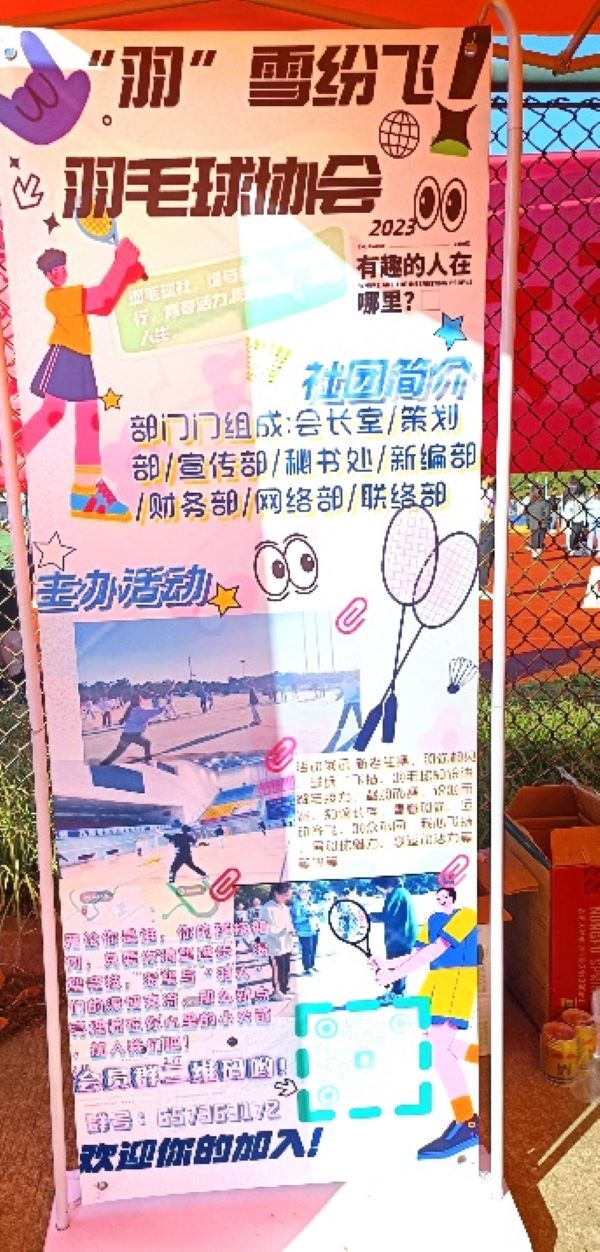 青春正当时,欢乐迎校运。为给运动会比赛选手加油助威,吸引更多同学加入羽毛球协会,推动羽毛球运动在校园的开展,丰富同学们的校园生活,特举办“舞动校园,‘羽’你同欢”秋季羽毛球宣传活动。