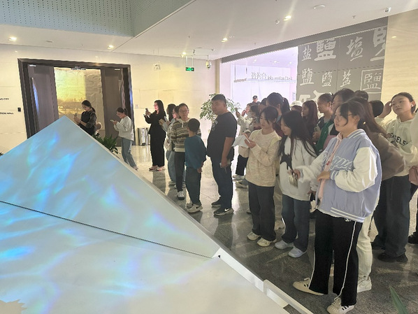 活动中,同学们在学院的带领下依次参观了“引海制盐”“行盐四方”“盐政春秋”“海盐兴城”四个篇章,了解了海盐的生产制作、各国各代盐的保存以及盐与盐城的天定佳话。生动简明地动画解说,跨越时空的文物展陈,无不让同学们纷纷赞叹博物馆的用心与诚意。地科221班徐昊唯同学说道:“通过丰富的展品和详细的解说,我对盐城海盐的发展历程有了更深入的了解。其中,最令我印象深刻的是盐的生产工艺展示区。在那里,我看到了盐的提取、晒制和加工过程,这些传统的工艺让我感受到了盐业的辛勤和智慧。”