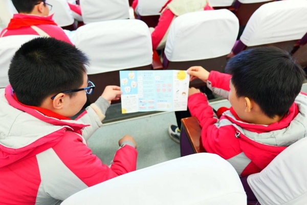 活动中,宣讲团成员面向六年级同学发放口腔健康宣传册,开展集中宣讲。“我们一天需要刷几次牙?龋齿有什么危害?几岁开始换牙?正确的刷牙方法应当上下转动刷,咬合面来回刷,里外都要刷干净……”。宣讲成员详细展示了牙齿的结构、作用,介绍了爱护牙齿的重要性以及正确的刷牙方式和牙线的使用方法,并邀请小朋友上台进行现场刷牙,充分激发了孩子们对牙齿的好奇心和对刷牙的兴趣。“我一定要好好刷牙,早晚两次,保护牙齿,不长蛀牙!”在现场互动环节中,同学们小手举得高高的,争先恐后地回答各个问题。主讲成员带领同学们齐声诵读了牙膏选择的诗歌,让同学们对保护口腔健康有了更全面深入的认识。